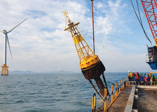등부표:해양풍력발전단지 부근을 항해하는 선박들의 안전항해 유도와 해상풍력단지 시설물을 보호하는 목적으로 해상에 부유하는등화를 갖춘 구조물